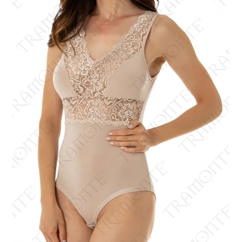 Body donna Tramonte spalla larga in morbido micromodal elasticizzato e pizzo