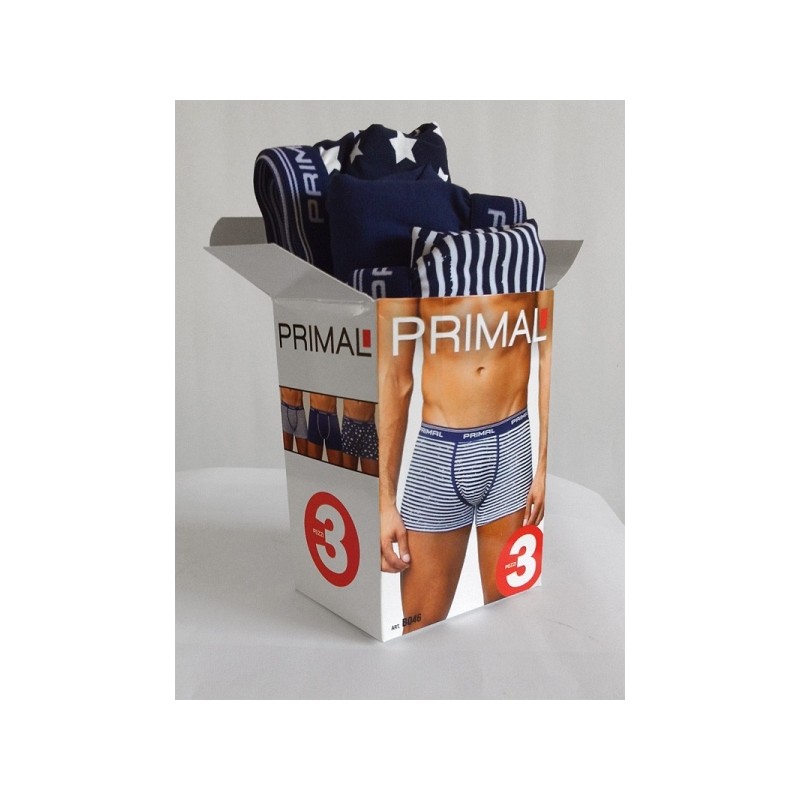 3 Boxer uomo Primal in cotone fantasia con elastico esterno logato. Modello art PRI014.