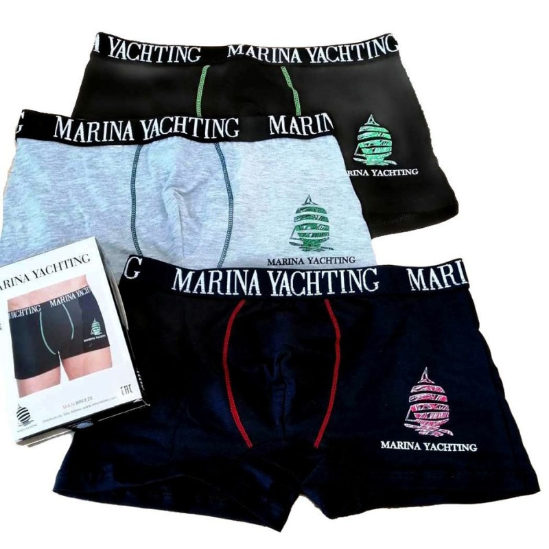 Gruppo di 6 Boxer da uomo Marina Yachting in morbido cotone elasticizzato con elastico esterno loggato. Modello art MY003. Composizione 90% cotone 10% elasten. La foto è indicativa, vi invieremo sempre un modello diverso delle nuove collezioni a seconda della nostra disponibilità a magazzino tra; rigato, scozzese, tinta unita con bande e micro fantasia. Per questo motivo non saranno accettate contestazioni a riguardo. Nel caso la ditta produttrice avesse sostituito il modello richiesto e non fosse piu' riassortibile, riceverete comunicazione e vi sarà inviato il nuovo modello.