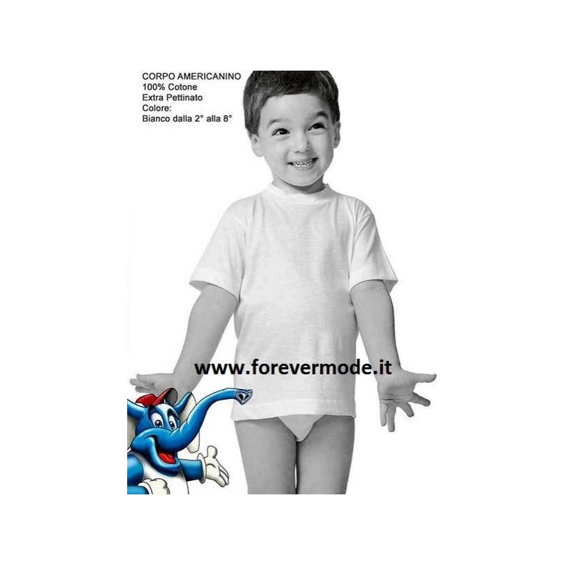 Maglia bambino Ellepi manica corta a girocollo in puro cotone aderente. Modello art BA645.