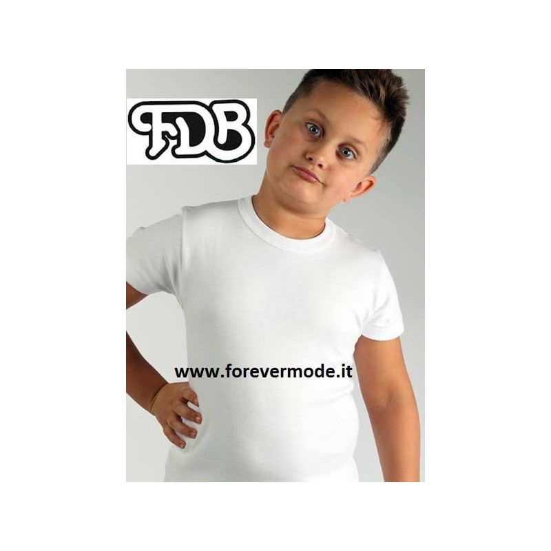 T-shirt maglia da bambino FDB della linea invernale manica corta a girocollo in caldo jersey di puro cotone felpato. Composizione 100% cotone. Modello art 032. Made in Italy.