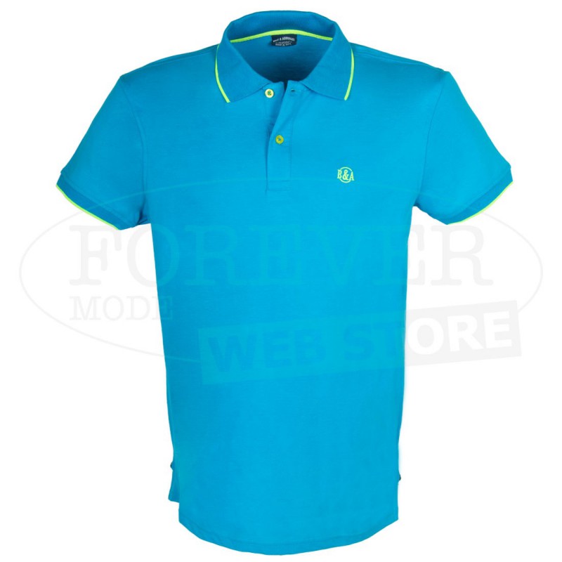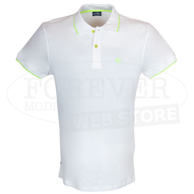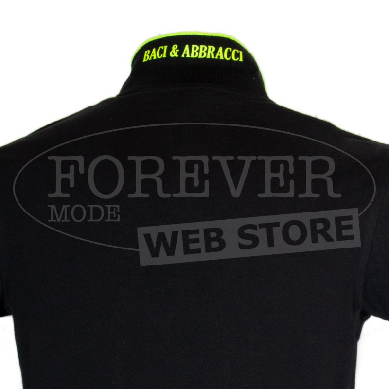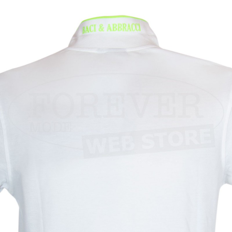 Polo uomo Baci & Abbracci con logo fluo ricamato e stampato sul collo. Modello art BAM1421.