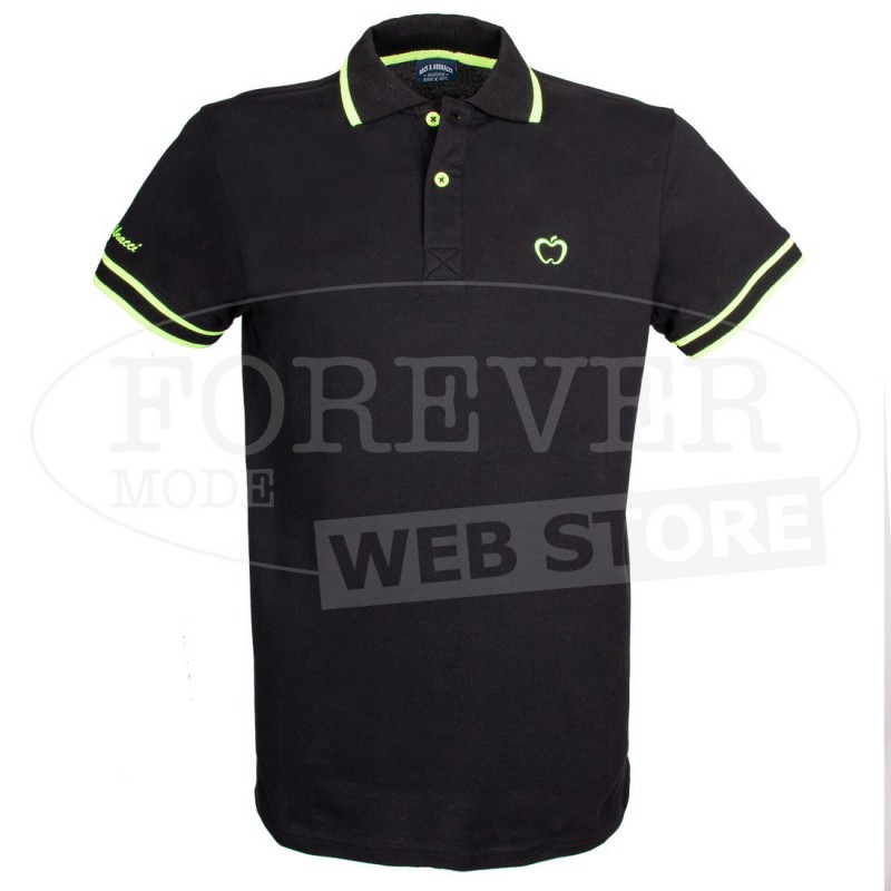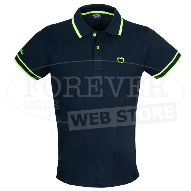 Polo uomo Baci & Abbracci con logo fluo ricamato e stampato sul collo. Modello art BAM1421.