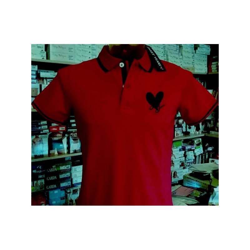 Polo uomo Baci & Abbracci con logo frontale e sul collo,bordi rigati. Modello art BAM2116.