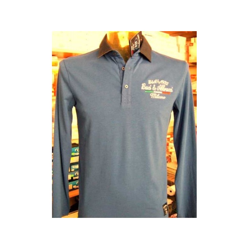 Polo uomo Baci & Abbracci a manica lunga con logo frontale e sul collo. Taglio elasticizzato. Composizione 90% cotone 10% elasten. Modello art bam733.