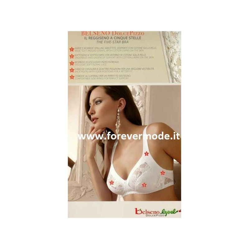 Reggiseno donna Lepel della linea Dolce Pizzo, in microfibra e pizzo elasticizzato senza ferretto, non imbottito. Coppe foderate in cotone. Il reggiseno a cinque stelle: 1) ampie e morbide spalline imbottite, doppiate con cotone sulla pelle; 2) sottoseno e sottocoppe con interno in cotone sulla pelle; 3) coppe ampie per garantire massimo sostegno; 4) ganci di chiusura doppi a quattro posizioni per una migliore vestibilità; 5) comode ali laterali per un perfetto sostegno. Disponibili in coppa B (normale), coppa C (abbondante) e coppa D (extra abbondante). Composizione 62% poliam 30% cotone 8% elastan. Modello art 230.