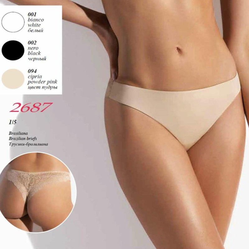 Slip brasiliana donna SieLei in microfibra liscia davanti, pizzo elasticizzato dietro. Modello art 2687.