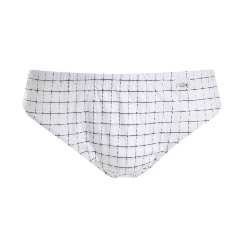 Gruppo di 6 Slip da uomo Ciellegi in morbido cotone Makò mercerizzato Camber quadrettato con colori assortiti su fondo bianco. Prodotto di qualità. Made in Italy. Composizione 100% cotone makò. Modello art 1501.