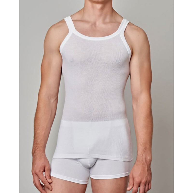 Canottiera uomo Cagi spalla stretta in puro cotone a costina. Modello art 1100. P.