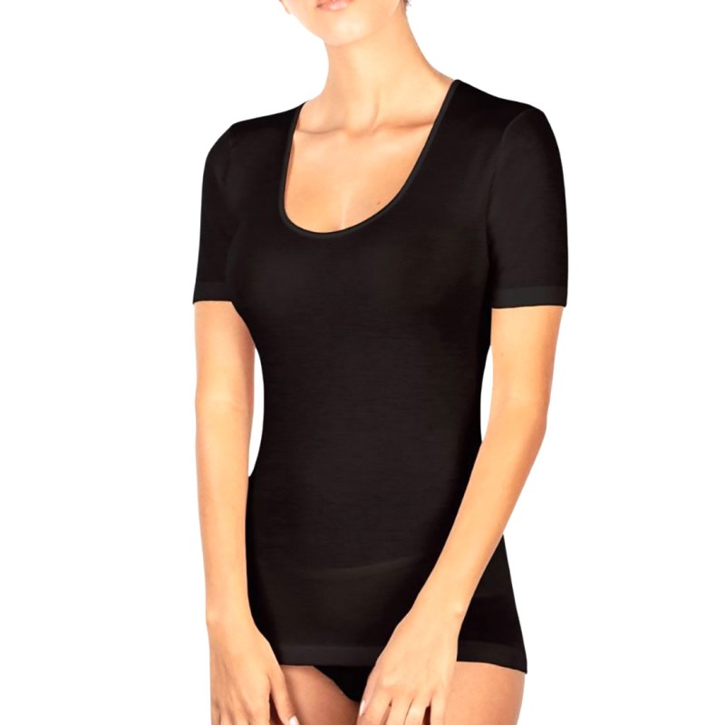 T-shirt maglia donna MBV o Moretta manica corta senza cuciture, bordi in raso. Modello art T5008 M.
