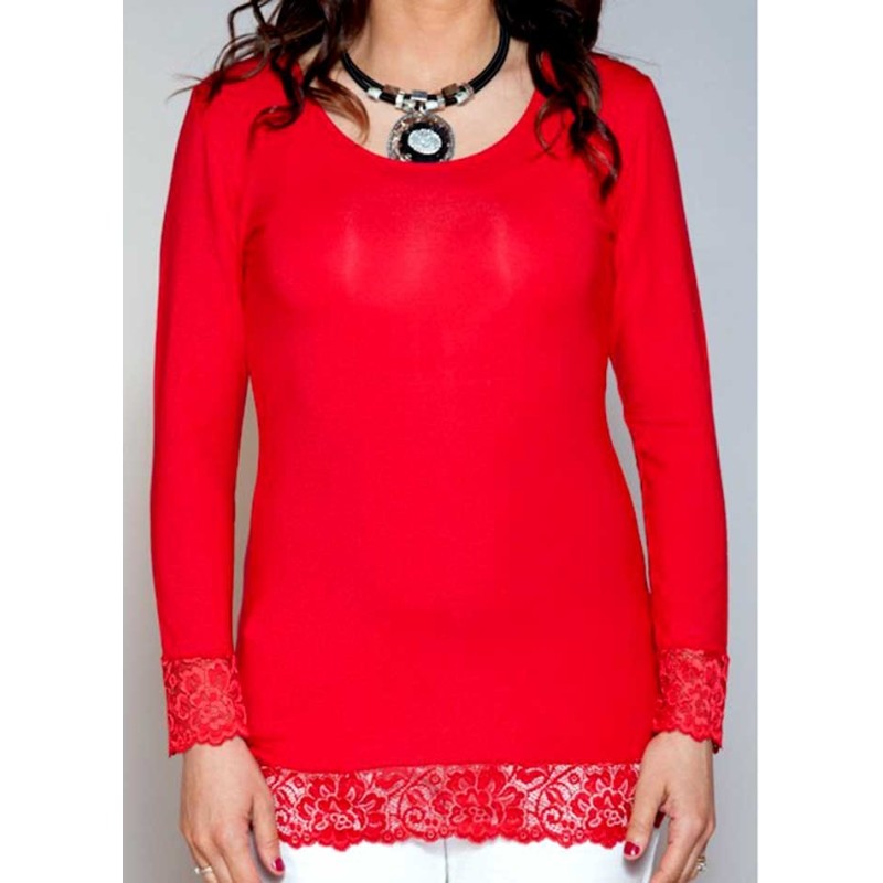 T-shirt Maglia donna Jadea sottogiacca in cotone con balze di pizzo. Modello art 4268.