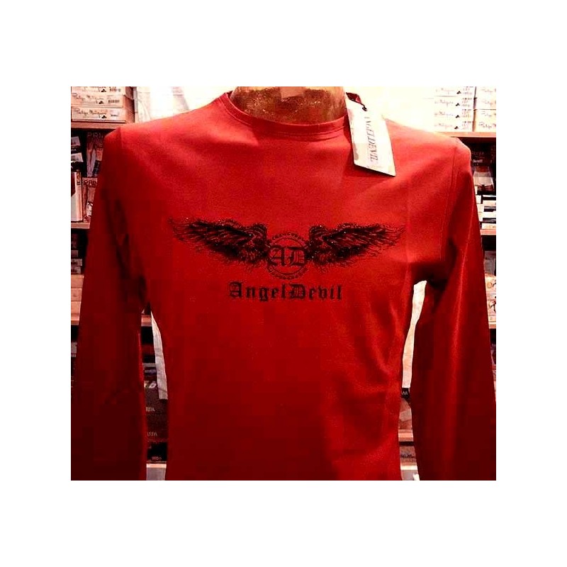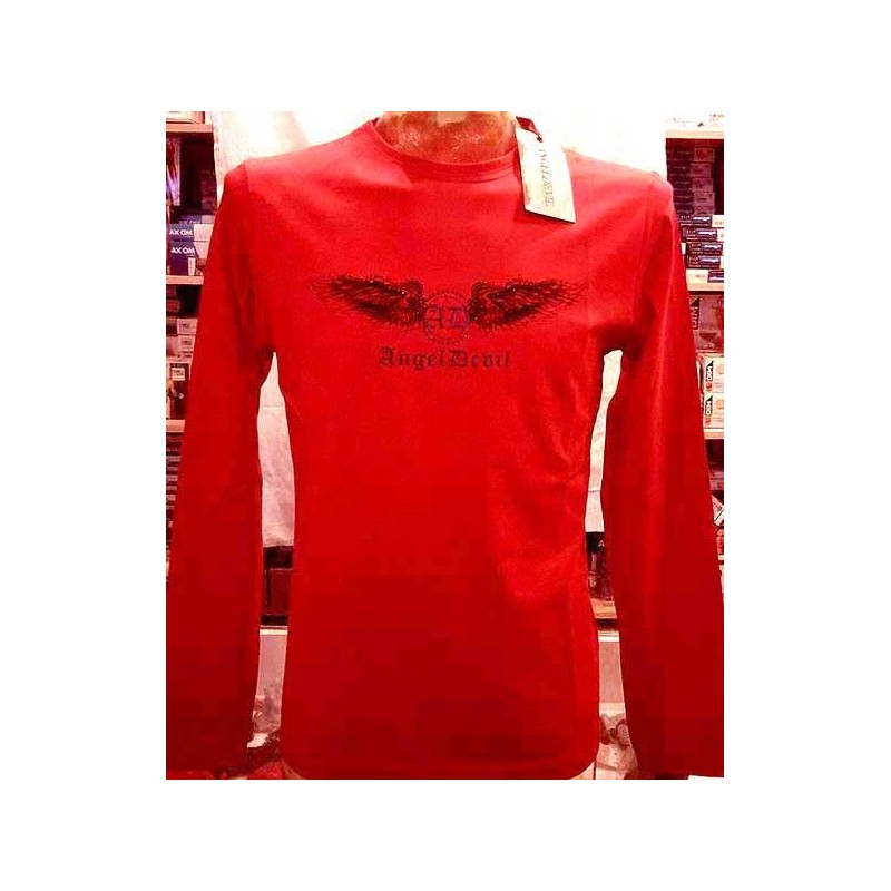 T-shirt maglia uomo AngelDevil manica lunga con logo in borchiette. Modello art 14010166.