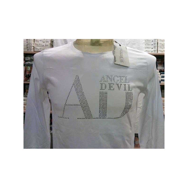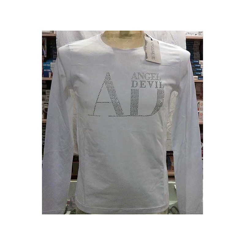 T-shirt maglia uomo AngelDevil manica lunga con logo in borchiette. Modello art 14010166.