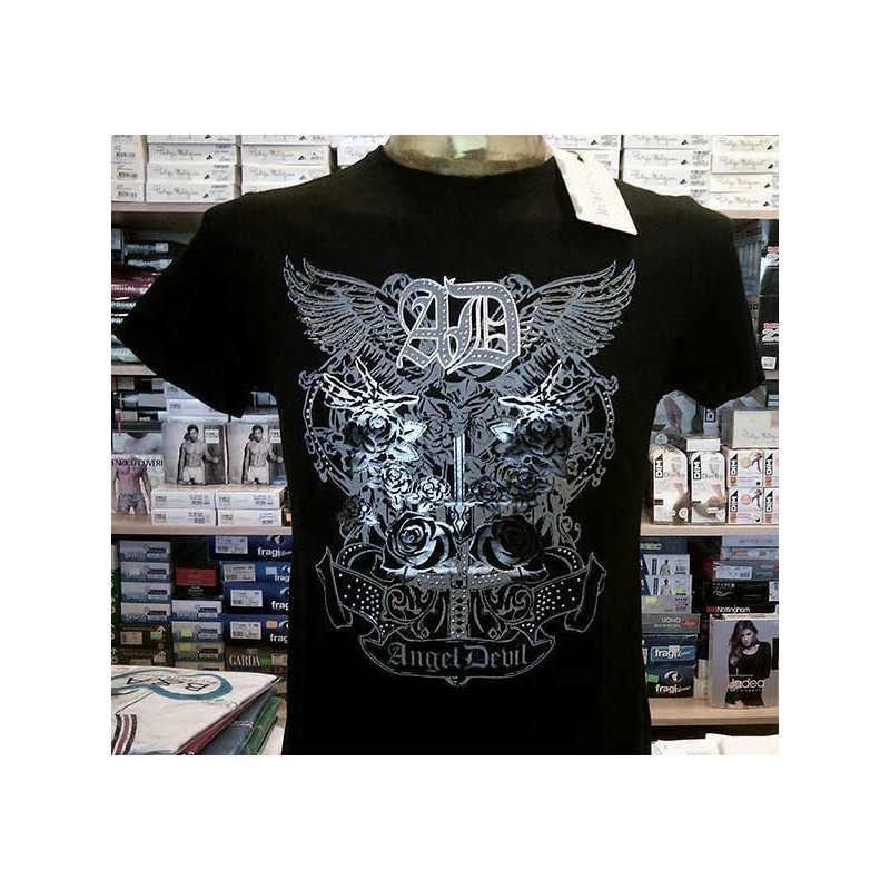 T-shirt maglia uomo Angel Devil con logo e stampa frontale. Modello art TU375.