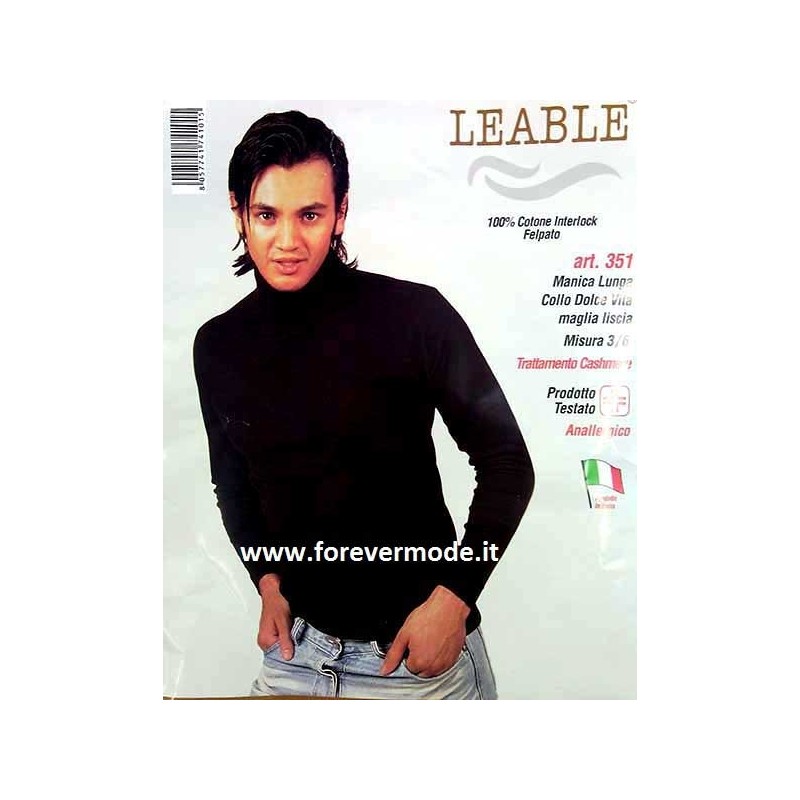 Maglia uomo Leable manica larga con collo a dolcevita esternabile in caldo cotone invernale. Composizione 100% cotone. Modello art 351. Nel caso la ditta produttrice avesse sostituito il modello richiesto e non fosse piu' riassortibile, riceverete comunicazione e vi sarà inviato il nuovo modello.